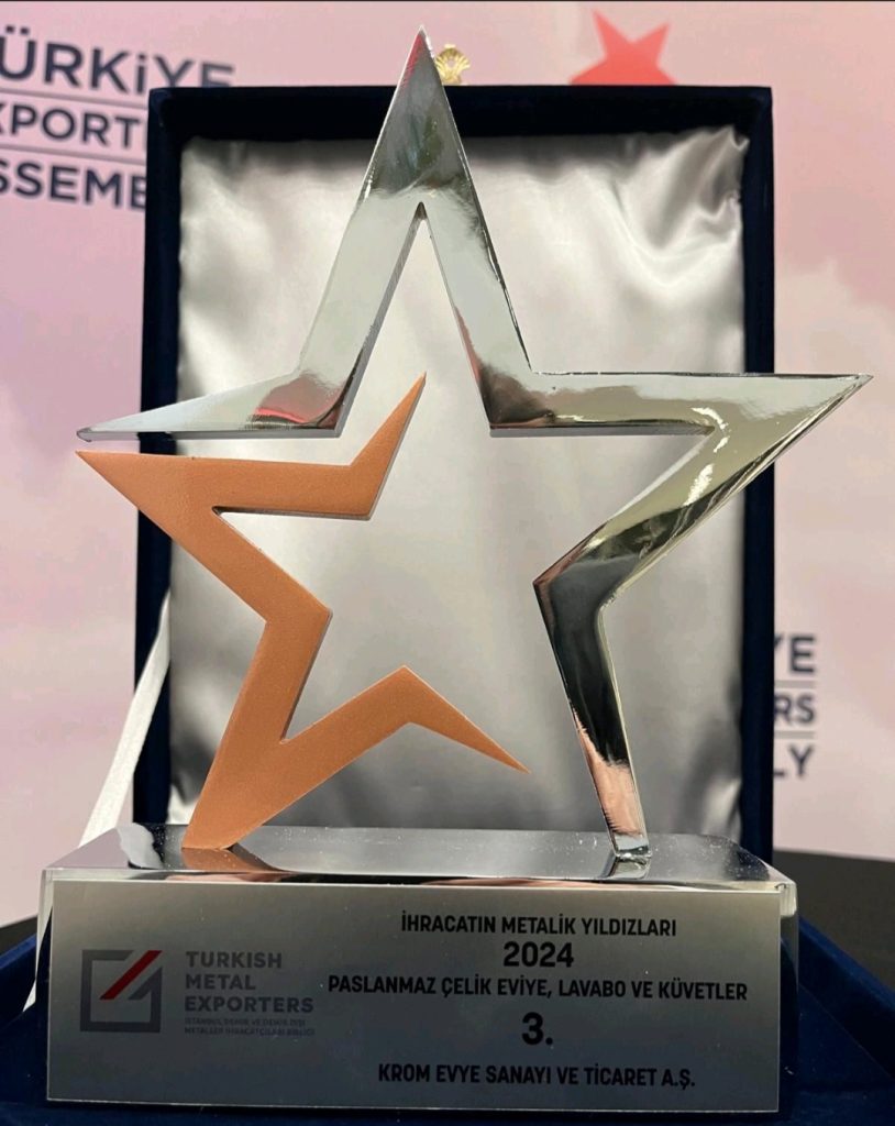 İstanbul Demir ve Demir Dışı Metaller İhracatçıları Birliği tarafından düzenlenen İhracatın Metalik Yıldızları 2024 ödül töreninde, Paslanmaz Çelik evye, Lavabo ve Küvetler kategorisinde Türkiye 3.’sü olduk!